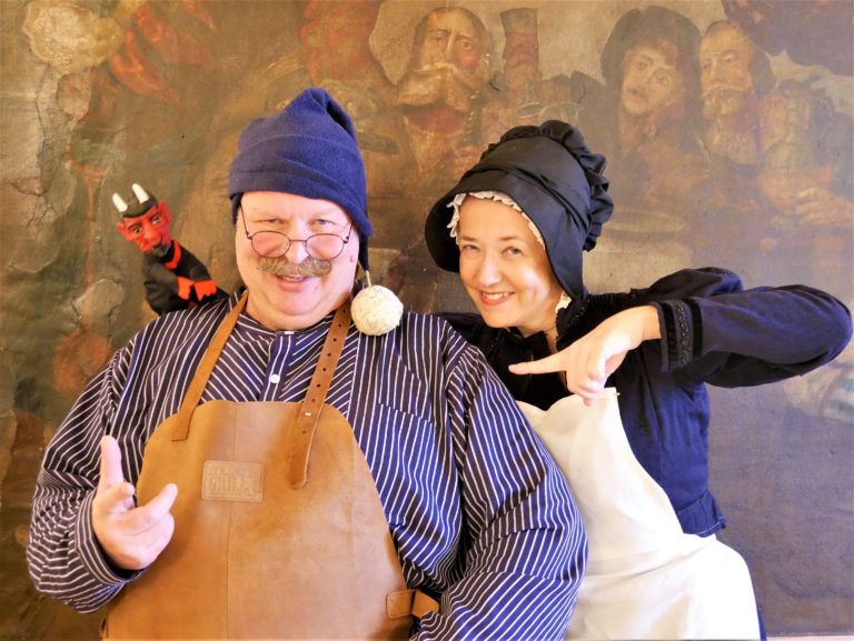 Jean und Faustina Deibel, in den 1880er-Jahren Wirtsleute auf Burg Gleiberg bei Gießen und seit einer vergifteten Wurstsuppe zu einem Dasein als Burggeister verdammt, erzählen über die Geschichte und Geheimnisse der Burganlage, der adligen Bewohner und trinkfesten Gäste. Dabei haben die beiden – wie schon zu Lebzeiten – eine recht unterschiedliche Sicht auf die Dinge, wodurch ein amüsanter Schlagabtausch garantiert ist. Inkl. Besichtigung der Katharinenkirche/Burgkirche. Ideal auch für Hochzeiten, Ausflüge und Familienfeiern. Auch buchbar für Veranstaltungen im Rittersaal.