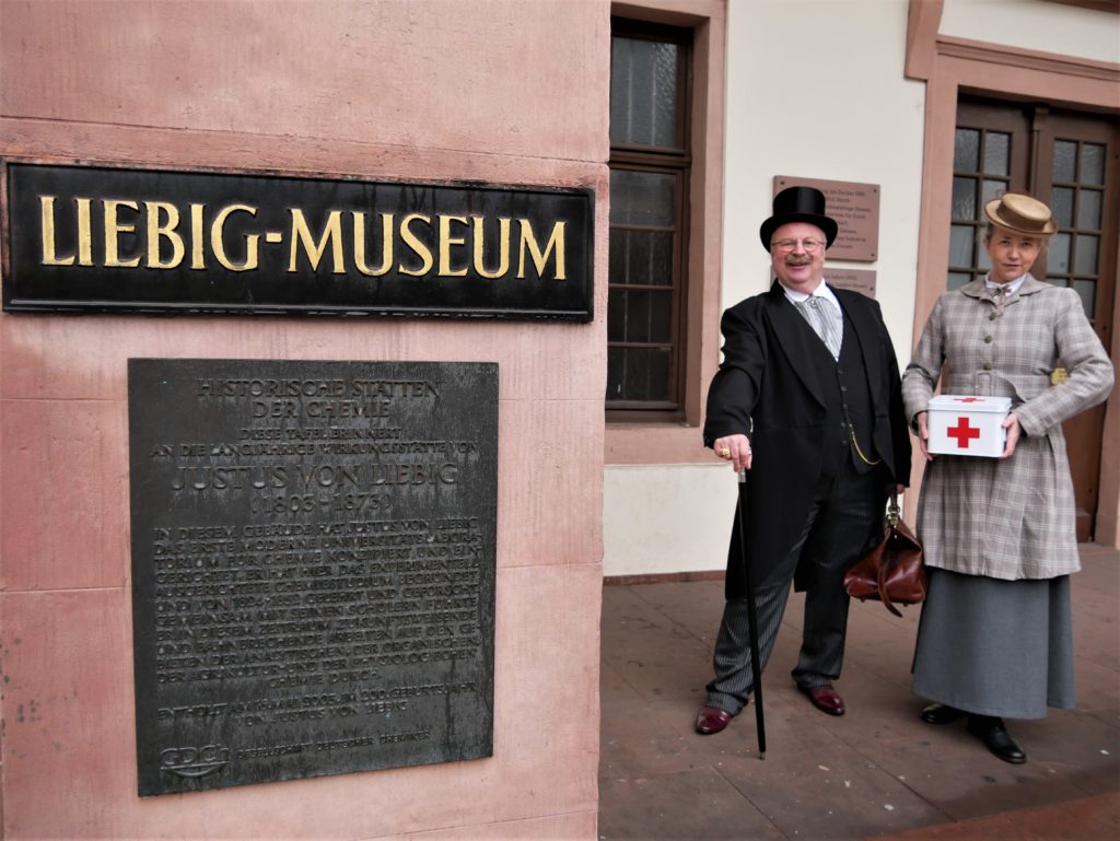 Zeitreise ins Jahr 1913: Frauenstrich und Kinderärztin Dr. Gloria van Tassel und Klinikarzt Theodor von Pappenheimer führen die Gäste durch das soeben fertiggestellte Gießener Klinikviertel. Sie erinnern in szenischen Dialogen an die historischen Orte, wegweisende Persönlichkeiten, die zum Wohle der Menschheit wirken, sowie an den Kampf gegen Krankheiten und Seuchen. Im Weiteren sprechen sie über seinerzeit moderne Diagnosen und Therapien.